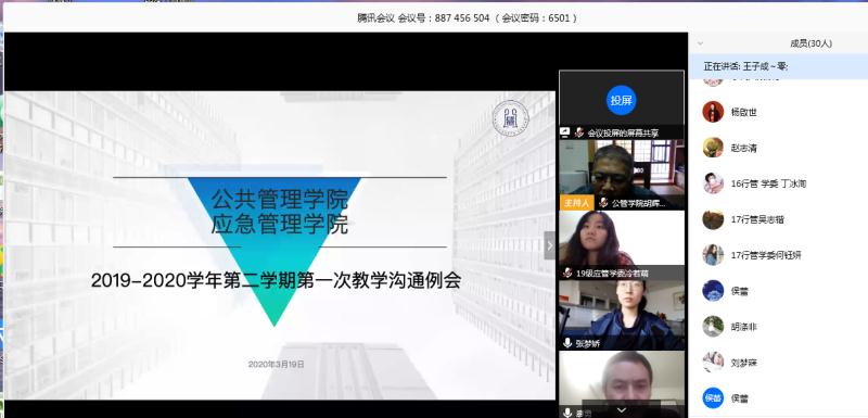 公共管理学院/应急管理学院召开2019-2020 学年第二学期第一次教学沟通例会