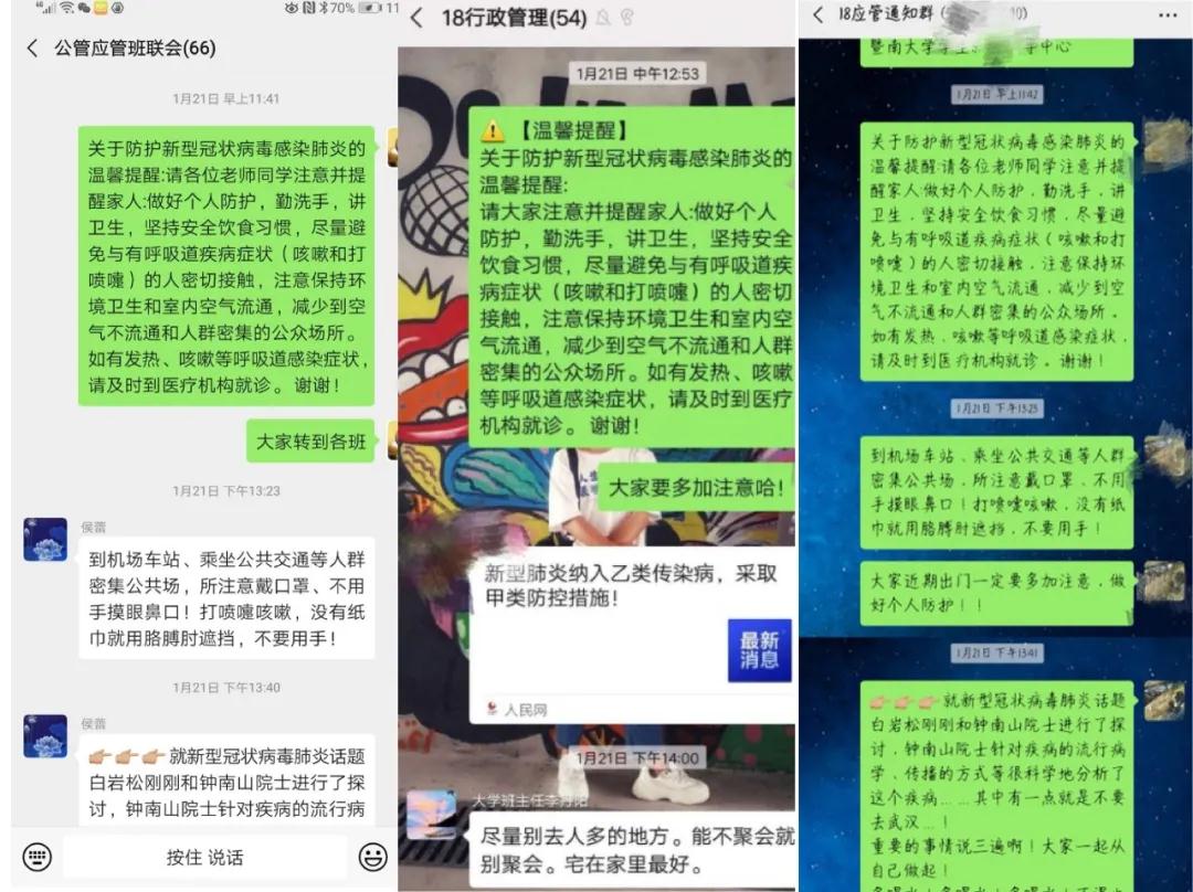 1月21日,学工队伍第一时间发布疫情防控提示