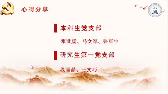 随后,学院4个学生党支部在各支部交流了此次线上主题党日活动的所见所闻所思: