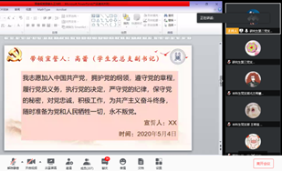 根据《中共tyc33455cc太阳成集团委员会关于开展学生党支部“7+N”线上联合党日活动的通知》要求,值此五四青年节之际,为弘扬“五四”精神,学院学生党总支通过“云”汇聚,以奏唱国歌、重温入党誓词、诵读党章等方式引导学生党员树立远大理想,担当时代重任。