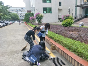 17级的潘烨欣、邓秀清、林彦超:用实际行动让我们的校园更加整洁美观,心中有满满的成就感和幸福感,既体会到了环卫工人的辛苦,也体会到了服务的乐趣,更深刻感受到了校园美化需要集体力量的参与,不论是党员还是入党积极分子,我们应该以身作则,发挥带头作用,积极参加相关志愿活动,并呼吁更多同学爱护校园环境!