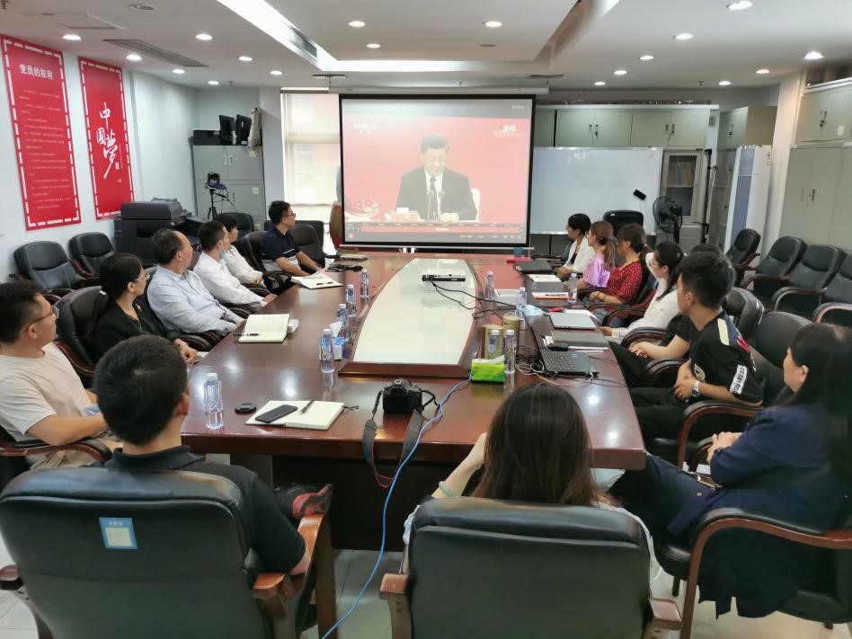 在学院党委的部署,学院领导、学院党委委员、教工第一党支部、师生代表在惠全楼519集中收看大会直播。各党支部师生纷纷通过网络、新媒体平台等方式观看大会直播。