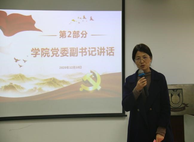 本次活动特邀联系指导支部的学院党委副书记侯蕾出席指导,“支部别开生面地以情景剧、故事会等创新的形式开展理论学习,让理论学习变得更有趣、更让人印象深刻,自由选题也增强了学习的针对性与时效性。”她表示,“希望同学们加强对理论学习重要性的认识,把理论学深、悟透,在学理论的过程中注意把理论学习“落地”,思考理论对我们的学习、工作、生活的指导意义,在课题、就业、升学的选择上都更多地与国家战略、国家需求结合,更好地创造社会价值、实现自身价值,更好地发挥学生党员的先锋模范作用。”
