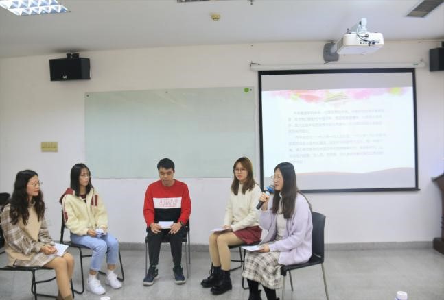 “大家好,欢迎收看今天的节目,今天的主题是“如何在求职大军中出奇制胜——聚焦2021届大学生就业”。这是公共管理学院/应急管理学院研究生第三党支部举行的《习近平谈治国理政》第三卷学习成果展示交流会现场,5个青年理论学习小组通过主题演讲、情景剧、角色扮演、访谈、诗歌朗诵、故事会等丰富多样的形式,开展了一堂别开生面的理论学习会,给支部成员带来一场视觉与听觉上的“盛宴”。