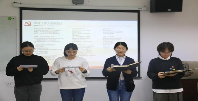 “我们在形式上借鉴了央视《我们的四十年——庆祝改革开放40周年文艺晚会》。《伟大的觉醒》这首诗歌内容大气,用诗歌朗诵的方式,既能用最真挚的感情歌颂祖国这40年的伟大历程,又能以较强的感染力,让观众产生共鸣。”组长陈妍姿说道。