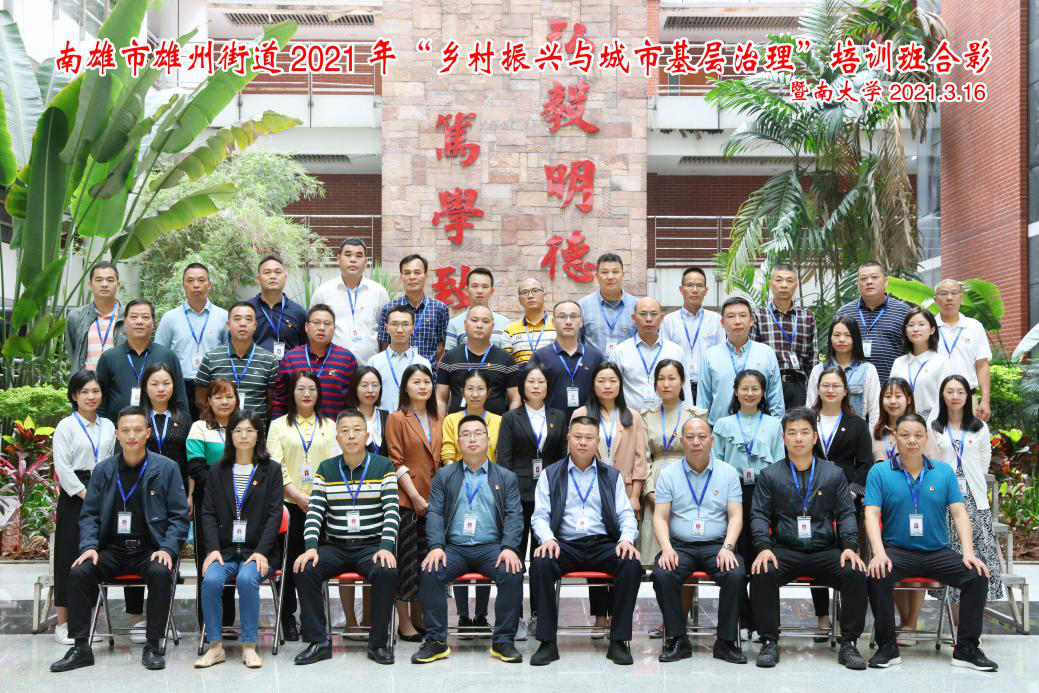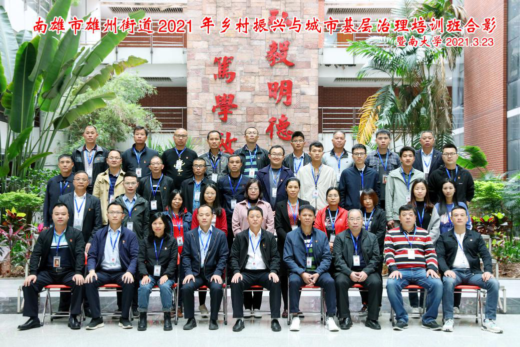 3月16日-26日,南雄市雄州街道办2021年乡村振兴与城市基层治理培训班(共两期)在tyc33455cc太阳成集团举办,此次培训由南雄市雄州街道办事处主办,tyc33455cc太阳成集团公共管理学院承办,来自雄州街道83名干部参加了本次培训。