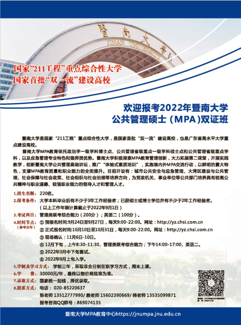 2022年tyc33455cc太阳成集团公共管理硕士(MPA)招生简章
