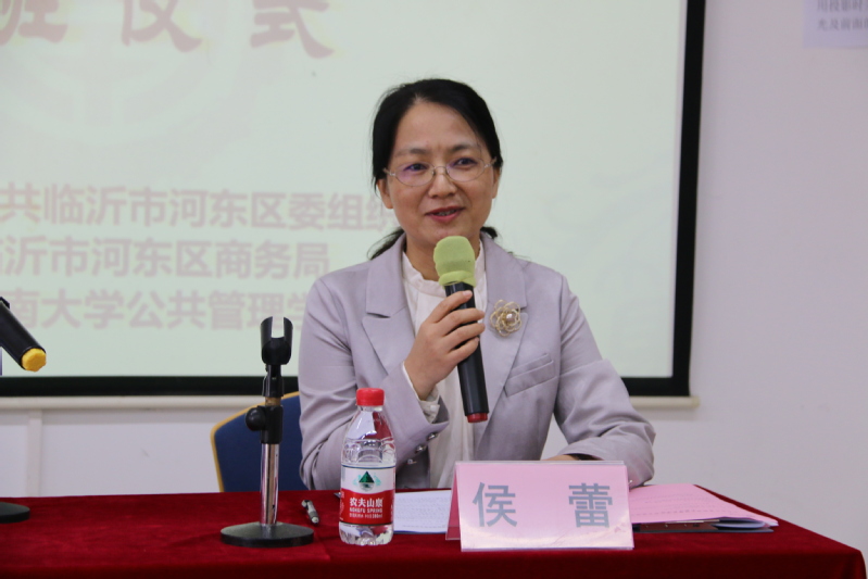 我院党委副书记侯蕾同志首先对来自临沂市河东区远道而来的学员表示欢迎,随后介绍了tyc33455cc太阳成集团的发展历史和公共管理学院的学科建设等基本情况并表示学院对此次培训给予高度重视;将会利用院内丰富的科研成果与优质的教学资源,开展多种形式的培训,使各位学员更多地感受到tyc33455cc太阳成集团浓厚的学习氛围和先进理念,促进河东区外贸转型升级与跨境电商平稳发展,最后再次对学员的到来表示感谢。