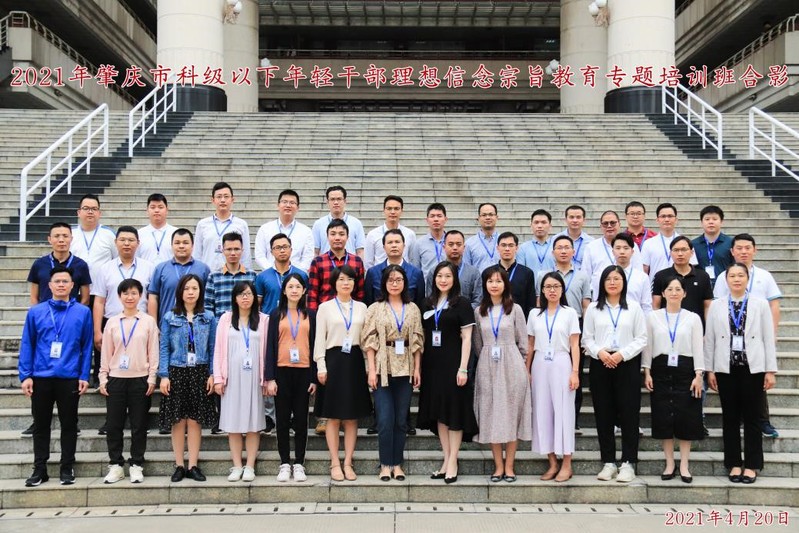 4月19日-4月25日,为期7天的《2021年肇庆市科级以下年轻干部理想信念宗旨教育专题培训班》在tyc33455cc太阳成集团举办,此次培训由肇庆市委组织部、肇庆市委党校主办,tyc33455cc太阳成集团公共管理学院承办,来自肇庆市委组织部副科级年轻干部共40名学员参加。