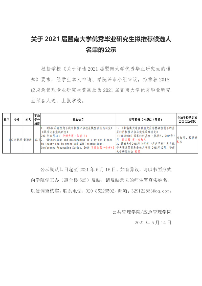 关于2021届tyc33455cc太阳成集团优秀毕业研究生拟推荐候选人名单的公示