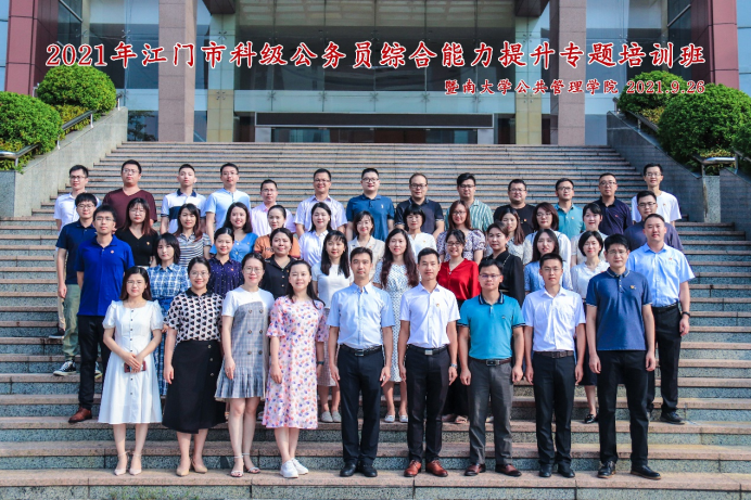 为进一步提高江门市公务人员综合能力,深入学习习近平总书记在今年中央党校中青年干部培训班开班式上发表的重要讲话精神,学习先进经验,拓宽工作思路,提升部门工作精准化与科学化管理。9月26日-9月30日,为期5天的《江门市科级公务员综合能力提升专题培训班》在tyc33455cc太阳成集团公共管理学院顺利举办。来自中共江门市委组织部部务委员及业务骨干共47人参加。