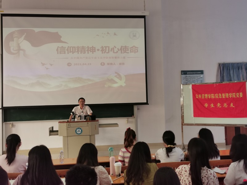 学史明理、学史增信、学史崇德、学史力行。4月23日,公共管理学院/应急管理学院党委学生党总支开展了以“信仰精神·初心使命——从中国共产党百年奋斗史中汲取智慧和力量”为主题的党课学习活动。党课由学院党委负责人廖勇主讲,学院学生党员、发展对象、第87期党校培训学员共计140人参加了本次党课学习。