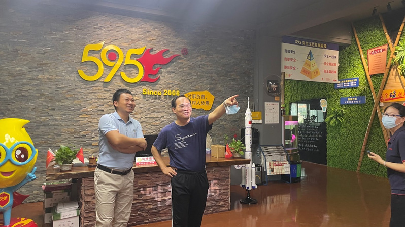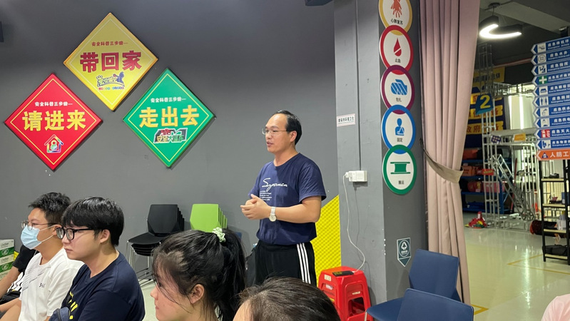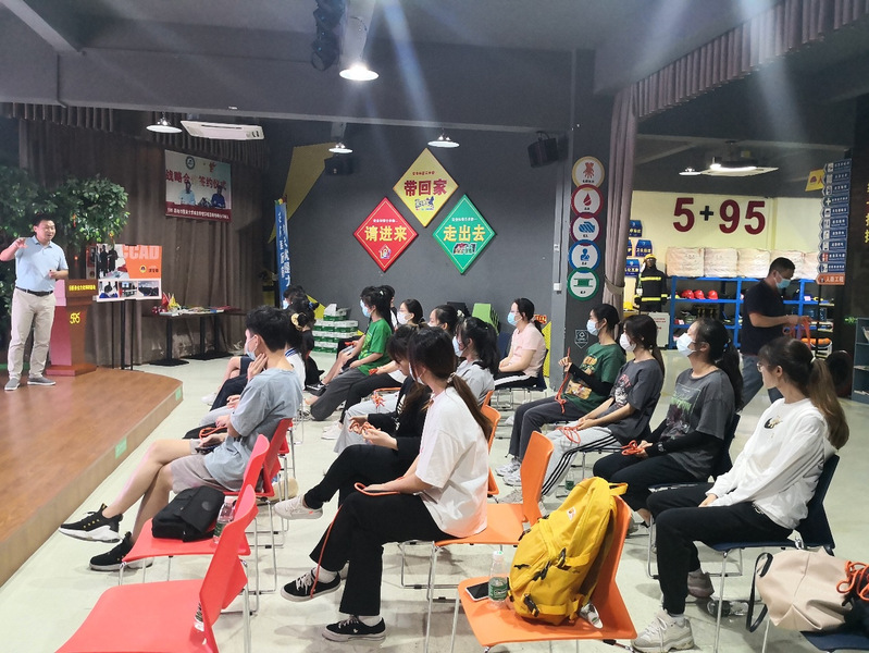 出发前,李伟权教授为同学们简单介绍了伍玖伍安全文化科技有限公司的发展历史与其基本业务,让同学们了解了其文化背景,做到心中有数。到达后,该公司法定代表人陈总又详细介绍了其公司的业务发展,介绍了公司核心理念——“关键时刻595”,并给同学们介绍了当日的应急技能学习和应急知识讲解安排。