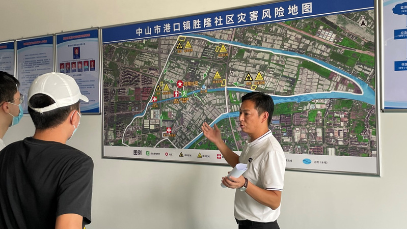 最后,陈总为同学们介绍了中山市2021年行政村(社区)防灾减灾救灾能力“十个有”建设——即有组织体系、有大喇叭、有警报器、有避难场所、有风险地图、有明白卡、有应急值守、有应急照明、有小册子、有宣传栏,确保日常有宣传、风险广知晓、灾前有预警、灾中可避险、受灾得救助,筑牢防灾减灾救灾的人民防线。李伟权教授总结了学习内容,随后,同学们结束了在伍玖伍公司的学习,前往港口镇胜隆社区实地学习“十个有”的防灾体系。