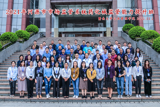 为深入学习习近平总书记提出的牢固树立安全发展理念,加快建立科学完善的安全治理体系,充分认识当前药化械安全监管形势,10月31日-11月6日,于tyc33455cc太阳成集团公共管理学院开展为期七天的“2021年河源市市场监管系统药化械监管能力提升班”。来自河源市市局、各县区局、直属分局和各基层所的药化械监督执法人员共70名干部参加本次培训。