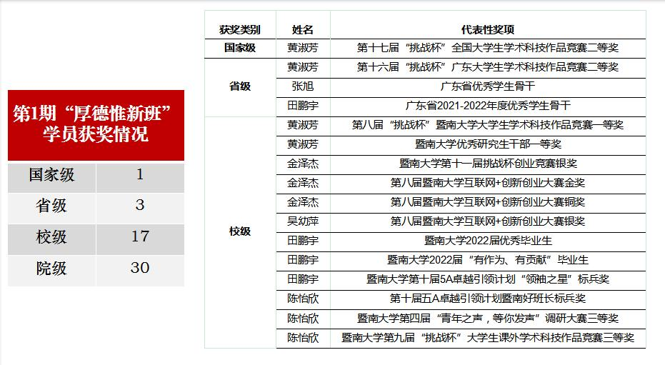 学院党委注重发挥优秀学生党员群体的先锋模范和示范引领作用,实施学生党员“菁英培育计划”,每年举办一期“厚德惟新班”,积极探索新时代学生党员优秀人才培养新载体。目前已完成第1期“厚德惟新班”培养,在学员、师资、管理等方面,具有“精英化、高标准、严要求”的特点,培养成效突出。