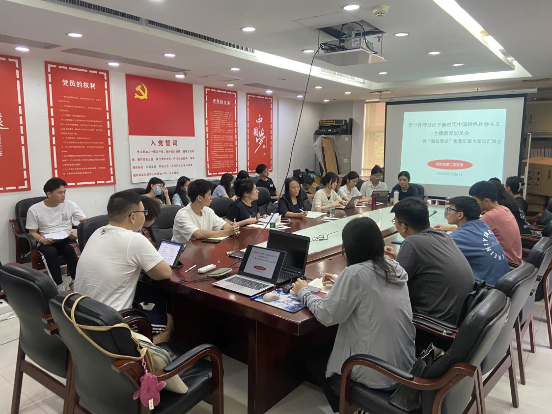 为提高思想政治理论水平,提升思想汇报撰写能力,2023年5月26日上午,研究生第二党支部在惠全楼519会议室举行了“‘凝思聚议’思想汇报大家议汇报会”。学生党总支书记曾伟、支部全体党员、发展对象、入党积极分子共计26人参加。