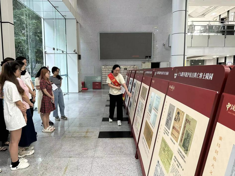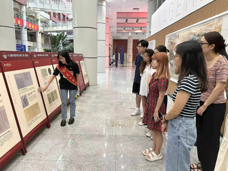 为推动学习贯彻习近平新时代中国特色社会主义思想和党的二十大精神走深走实,弘扬抗战精神,9月21日下午,研究生第一党支部成员到惠全楼一楼参观《中流砥柱-中国共产党抗战文物图片展》,由杜碧瑶、段倩婧、姚屹丽三位志愿讲解员为支部成员讲解图片展内容。