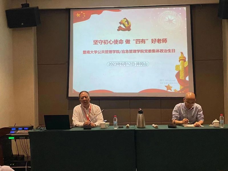 6月12日晚上,学院党委在井冈山红色教育基地开展“坚守初心使命,做‘四有’好老师”主题党日活动,过了一场严肃温情而有厚度的集体“政治生日”会。学院院长、党委副书记蔡立辉,党委副书记侯蕾,副院长胡辉华、戴胜利及教工党员代表共17名同志参加,活动由广东省样板党支部、教工第二党支部书记王子成主持。