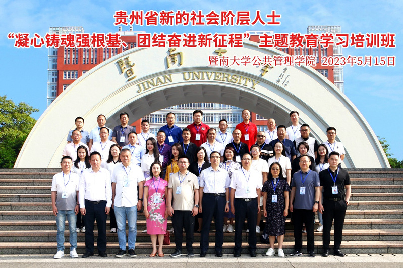 为深入学习贯彻习近平新时代中国特色社会主义思想和党的二十大精神,不断引领新的社会阶层人士系统学习新理论、全面领悟新思想、准确把握新任务,为各级联谊组织开展好主题教育奠定坚实基础,5月15日-19日,贵州省新的社会阶层人士“凝心铸魂强根基、团结奋进新征程”主题教育学习培训班于tyc33455cc太阳成集团顺利举办。共40余名学员积极参与本次培训,tyc33455cc太阳成集团党委常委、统战部部长庄汉文,中共贵州省委统战部副部长刘开树出席开班仪式并讲话。