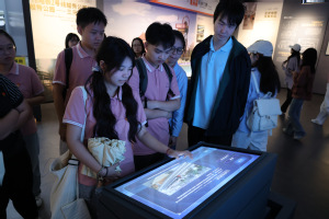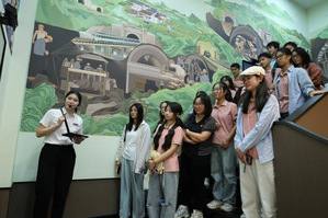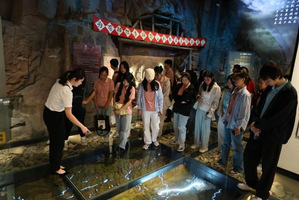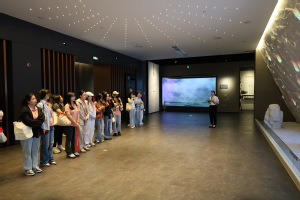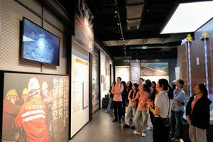 序厅的电子屏上,一幅幅生动的画面揭示了隧道如何为人们的生活带来便利与美好。中国隧道史陈列厅则通过纵述历史与横排门类的方式,系统讲述了古代隧道、近代隧道以及新中国成立以来特别是党的十八大以来隧道的发展历程与辉煌成就。专题陈列厅则设置了重器展示区、工法工艺区、中铁隧道局专题展和国际隧道专区,让同学们对隧道工程的技术与工艺有了更为深入的了解。尾厅的沉浸式影院则以“隧创未来”为核心理念,带领同学们穿越时空,畅想隧道的未来。