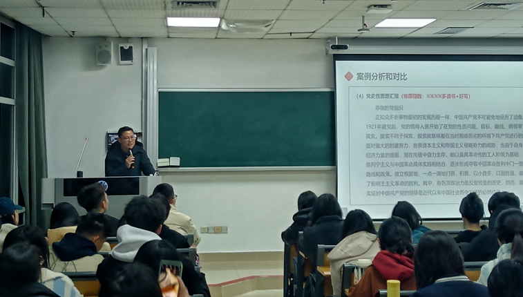 讲座中,邓双全结合毛泽东同志的《反对党八股》,强调了思想汇报撰写的注意事项,提出要加强自我剖析,通过思想汇报的方式不断纯洁自己的入党动机。他认为,要加强党史学习教育,认真研读《毛泽东选集》等经典著作,提高政治站位,提升思想汇报撰写的理论深度和水平,鼓励同学们结合近期开展的学习教育,巩固学习成果,积极推动成果转化。