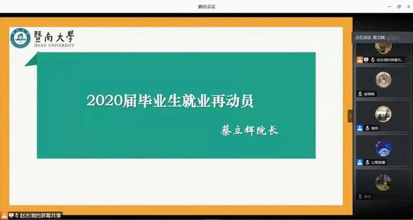 6月12日上午,太阳集团tyc33455在线上召开2020届毕业生就业再动员会。学院院长蔡立辉教授,党委负责人廖勇,党委副书记侯蕾,学生党总支书记曾伟,本科生研究生辅导员,及学院2020届全体本科、硕士毕业生参加了会议。会议由廖勇主持。